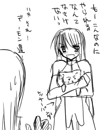 PF3に参加させんのもいいかなぁと思いつつ、イラスト描こうと思っても、なんつーかだっせーのしか浮かばないのでうごーっとしてます。たぶん参加はなしだ(笑